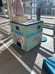 Sie ist ein Ausdruck der eigenen Persönlichkeit: Die Kleidung, die wir tagtäglich auf unserer Haut tragen. Während sie eigentlich etwas zutiefst persönliches ist, wird sie zeitgleich immer unpersönlicher: Massen an Kleidung fluten weltweit die Märkte. So schnell, wie neue Teile Einzug in unsere Kleiderschränke finden, werden sie schon durch neue Trendteile abgelöst – oder finden ob ihrer schlechten Verarbeitung den Weg in den Müll. Ein kritischer Blick auf die Modeindustrie wurde im vergangenen Semester in einem Masterseminar der Kulturanthropologie geworfen. „Antikapitalistische Moden“ hieß dieses. Das Modesystem kritisch hinterfragen und Ansätze finden, wie es weiterentwickelt werden kann – darum ging es in dem Seminar. Aber anders als so oft sonst bleiben die Ergebnisse nicht hinter verschlossenen Seminar-Raumtüren: Vier Masterstudierende haben die Ausstellung „Gegen_Mode“ konzipiert, die aktuell im Forum Wissen zu sehen ist. Benita Heukamp hat direkt nach der Eröffnung mit den Studierenden Jana-Sophie Winneg und Lotta Geßner gesprochen. Geßner antwortet zuerst.
