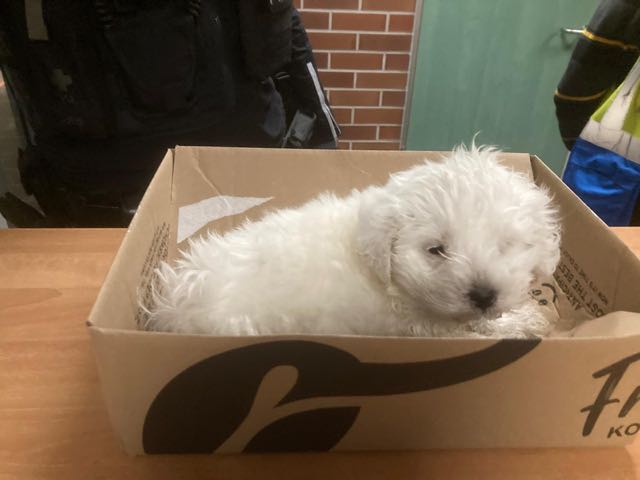 Hund im Papiermüll aufgefunden - Mitarbeitende der GEB retten jungen Welpen
