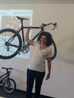 „Die Niedersächsische Ministerin für Wissenschaft und Kultur, Gabriele Heinen-Kljajić ist von der Leichtigkeit eines Karbon-Fahrrads begeistert. (Bild: Sophie Künstler)