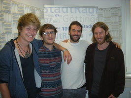 Tom Schreibers Blume im StadtRadio (v.l.n.r.- Jonathan Blümcke, Henrik tom Dieck, Marian Schreiber und Jannes Schreiber) (Bild: Jeanine Rudat)