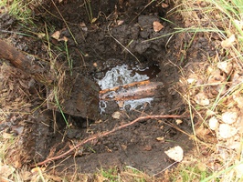 Die alte Drainage aus Tonröhren funktioniert mit breiten Ketten beim Verschließen von Entwässerungsgräben mit Sägespänen noch immer (Bild: Niedersächsische Landesforsten)