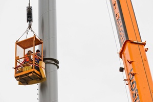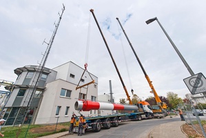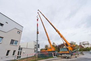 Mit dem nun angebrachten Schornstein rückt die Fertigstellung des Blockheizkraftwerkes näher. (Bild: UMG)