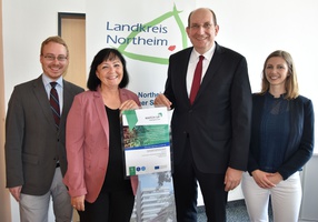 v.l.n.r. Daniel Schmidt (Amt für regionale Landesentwicklung Braunschweig - Projektbüro Südniedersachsen), Landrätin Astrid Klinkert-Kittel, Matthias Wunderling-Weilbier (Landesbeauftragter vom Amt für regionale Landesentwicklung Braunschweig) und Stefanie Thomuscheit (Landkreis Northeim, Fachbereich für Mobilität und Wirtschaftsförderung)