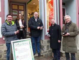 Es funktioniert - Claus und Dagmar Kopp testen mit Jörg Hüddersen, Bürgermeister Becker und vtm Vorsitzendem Rolf Grönig (v.l.n.r.) das freie WLAN in der Osteroder Fußgängerzone (Bild: Stadt Osterode am Harz)