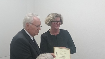 Marlies Schügl und Thomas Buergenthal bei der Übergabe der Ehrenmitgliedschaft. (Bild: Tanita Schebitz)