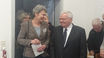 Sozialdezernentin Petra Broistedt und Thomas Buergenthal beim Jubiläum des Freundeskreises der Stadtbibliothek Göttingen. (Bild: Tanita Schebitz)