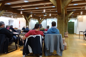 Senegalprojektinitator Tobias Rusteberg (Mitte, stehend) berichtet während der Ratssitzung von der Reise. (Bild: Christian Bröhl)