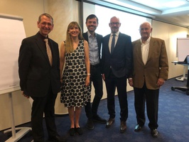 Von links nach rechts: Rolf Döring,Vorstandsmitglied der Volksbank Mitte eG; Katja Thiele-Hann, Ehrenkreishandwerksmeisterin; Christian Frölich, Kreishandwerksmeister; Björn Henkel, Vorstandsmitglied der Volksbank Mitte eG; Klaus-Hagen Hage, Ehrenkreishandwerksmeister (Bild: Andreas Gliem)