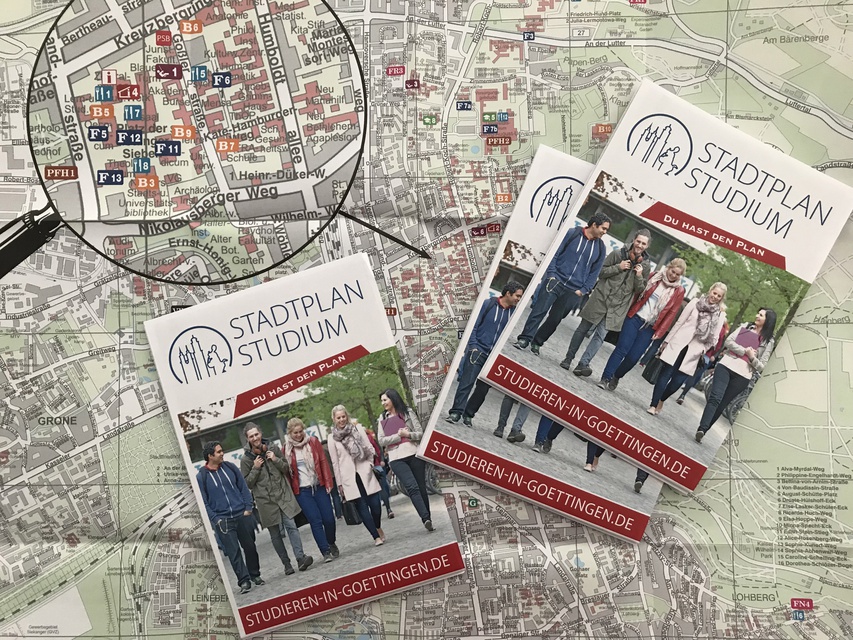 Die Initiative „Studieren in Göttingen“ hat den „Stadtplan Studium - studieren in goettingen.de“ in fünfter Auflage veröffentlicht. Es seien 18.000 Exemplare für die kostenfreie Abgabe im Zentralmensafoyer des Studentenwerks Göttingen, der Abteilung Öffentlichkeitsarbeit der Universität Göttingen sowie bei der Stadt Göttingen im Neuen Rathaus gedruckt worden. Zu der verantwortlichen Initiative gehören neben der Stadt und dem Studentenwerk Göttingen die Georg- August-Universität, die Private Hochschule Göttingen (PFH), die Hochschule für angewandte Wissenschaft und Kunst (HAWK) und die Verwaltungs-, Wirtschaftsakademie und Berufsakademie Göttingen (VWA). Auf der Vorderseite des Stadtplans befindet sich eine Karte des Göttinger Stadtgebietes mit dem Zentralcampus. Auf der Rückseite ist ein Ausschnitt aus dem Straßenverzeichnis zusammen mit einer Liste von Einrichtungen des Studentenwerkes, der Stadt und der Lehreinrichtungen zu finden. Zum Semesterbeginn wollen die Hochschulen und Fakultäten den Plan ihren Erstsemester-Infopaketen beilegen.