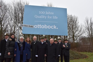 Rund eine Woche vor dem Festakt zum 100-jährigen Bestehen des Medizintechnikunternehmens ist gestern in Duderstadt die „Otto-Bock-Straße“ eingeweiht worden. Die Straße am Westeröder Kreisel grenzt damit an das westlichste Ende der Max-Näder-Straße und liegt direkt am Firmensitz des Unternehmens. Näder, der Schwiegersohn Otto Bocks, hatte 1946 in Duderstadt eine Vertriebsstätte eröffnet, sodass die Stadt neuer Unternehmensstandort wurde. Zum Jubiläum am kommenden Montag (18.Februar) werden unter anderem Bundeskanzlerin Angela Merkel und Niedersachsens Ministerpräsident Stephan Weil erwartet.