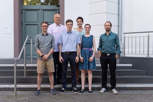 V.l.n.r.: Dominic Simm, Prof. Dr. Stephan Waack, Dr. Martin Kollmar, Stefanie Pinkert (Gründungsförderung Universität Göttingen), Dr. Stefanie Mühlhausen und Dr. Florian Odronitz. (Bild: Stefanie Mühlhausen)