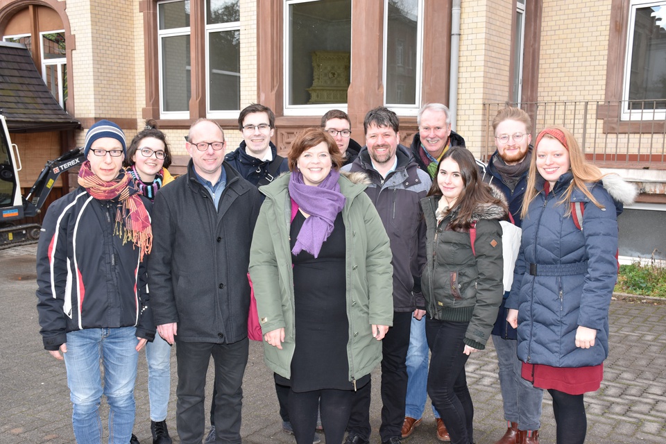 Vor der neuen Wohnung: (v.l.) Hendrik Wenneker (Student), Isabel Dralle (Studentin), Dr. Marc Wischnowsky (Bildungsabteilung des Landeskirchenamtes), Pascal Ahrens (Student), Almuth Wiesenfeldt (Hochschulpastorin), Jannik Simon (FSJler), Daniel Küchenmeister (Hochschulpastor), Rainer Koschischke (Bauabteilung Landeskirchenamt), Evelyn Schröder (Bauabteilung Landeskirchenamt), Morten Hennebichler (Student) und Aneke Dornbusch (Promoventin) freuen sich schon auf den Umzug (Bild: Jeanine Rudat)