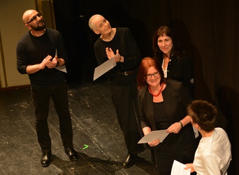 Foto im Ordner: (von links nach rechts): A. Garemani, U. Gruenwald, S. Harton, L. Stehling, Silke Inselmann (Moderatorin) (Bild: Pagendarm)