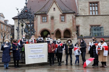 Mit einer Mahnwache am Göttinger Gänseliesel haben am Sonntag mehrere Organisationen und Gruppen die politischen Zustände in Belarus kritisiert und Solidarität mit der dortigen Demokratiebewegung sowie Asylsuchenden gefordert. In einer gemeinsamen Mitteilung verurteilen unter anderem der Göttinger Kreisverband der Europa-Union Deutschland, die Deutsch-Französische sowie die Deutsch-Polnische Gesellschaft Göttingen und die Grünen-Europa-Abgeordnete Viola von Cramon das Verhalten des belarussischen Machthabers Alexander Lukaschenko auf das Schärfste. Zugleich sprechen sie dem Menschenrechtszentrum Wjasna ihre Unterstützung aus. Ihm zufolge gebe es zurzeit über 900 politische Gefangene in Belarus. Zudem seien nach Angaben von Menschenrechtsorganisationen bereits zwölf Menschen an der Grenze zu Polen gestorben. Die EU müsse nun handeln und die Situation der Geflüchteten an der Grenze mit Sofortmaßnahmen verbessern, so der Appell der verschiedenen Gruppen. Die EU dürfe sich auch nicht von Diktatoren erpressen lassen. Lukaschenko wird auch als „letzter Diktator Europas“ bezeichnet. Die 2020 durchgeführten Präsidentschaftswahlen in Belarus, bei denen er über 80 Prozent der Stimmen erhalten hatte, gelten als umstritten.