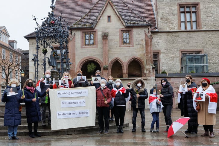 Mahnwache für Demokratiebewegung in Belarus am Gänseliesel abgehalten