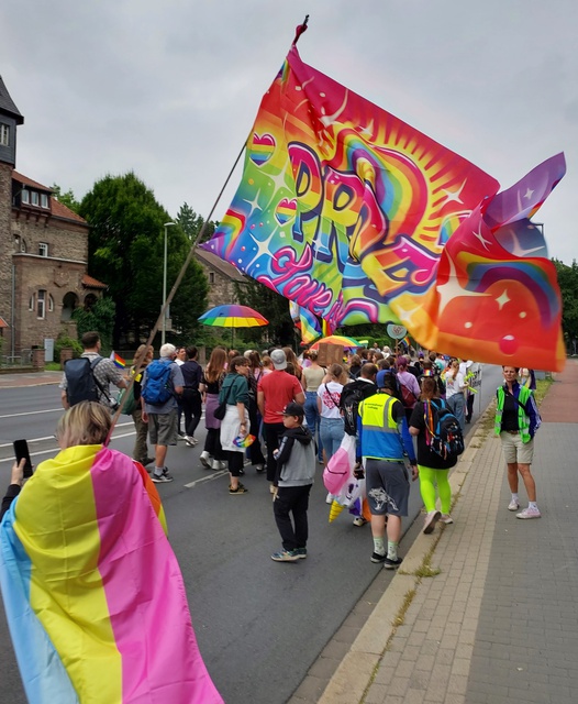 Bunte Flaggen, schillernde Seifenblasen und ermutigende Songs – so hat die queere Gemeinschaft am Samstag den Christopher-Street-Day in Göttingen gefeiert. Rund 2.500 Menschen beteiligten sich an der Demonstration, die um 12:30 Uhr am Neuen Rathaus startete. Der Zug führte über die Bürgerstraße und den Bahnhof Richtung Innenstadt und legte am Gänseliesel eine Zwischenstation für Redebeiträge ein. Im Zentrum der politischen Forderungen stand das neue Selbstbestimmungsgesetz. Nach Ansicht des Orga-Teams müsse es jedoch noch erweitert werden – unter anderem durch eine schnellere Möglichkeit, die eigene Geschlechtsidentität rechtlich anerkennen zu lassen. Auch mehr Schutz vor queerfeindlicher Gewalt, eine diskriminierungsfreie Gesundheitsversorgung und die Reform des Familienrechts wurden gefordert. Am Nachmittag ging es mit dem Straßenfest auf dem Albaniplatz weiter. Dort erwartete die Besucherinnen und Besucher ein vielfältiges Programm: Von Drag-Shows über Konzerte bis hin zu Redebeiträgen, moderiert von der Drag Queen Renelopé Fauxwell. Dazu kamen zahlreiche Info- und Mitmachstände, etwa von Amnesty International, Fridays for Future oder den Queer Teachers Göttingen. Bis in die späten Abendstunden wurde gefeiert, getanzt und diskutiert – immer mit der klaren Botschaft, dass Sichtbarkeit, Selbstbestimmung und Solidarität zentrale Anliegen bleiben.